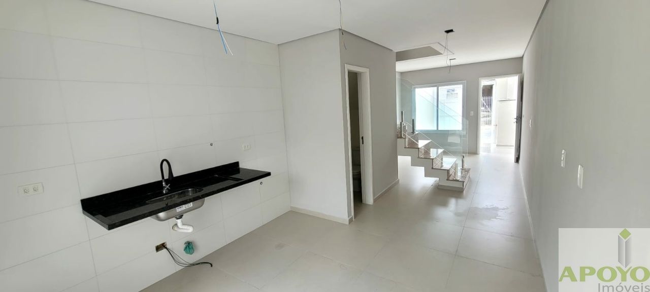 Sobrado com 2 Dormitórios sendo suíte com piso em porcelanato, cozinha, sala para dois ambientes com piso em porcelanato, 2 vagas com Portão automático, quintal pequeno