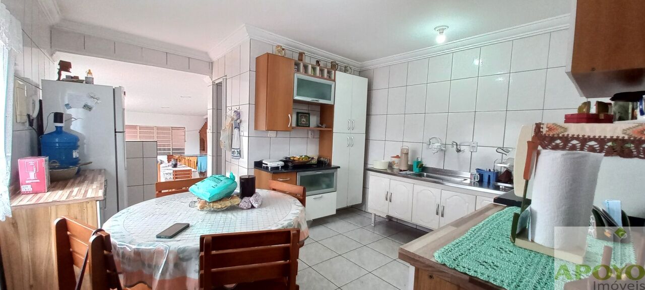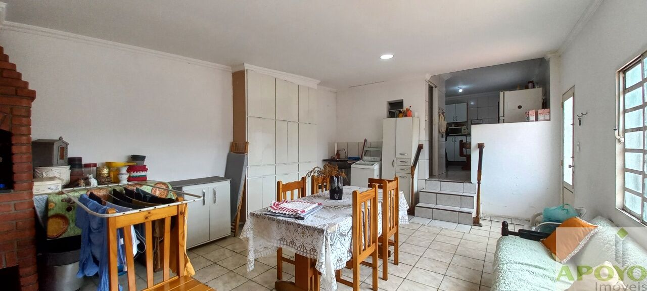 Casa 1: 3 dormitórios, sala, cozinha, 2 banheiros com box, churrasqueira, lavanderia, quintal e jardim.
