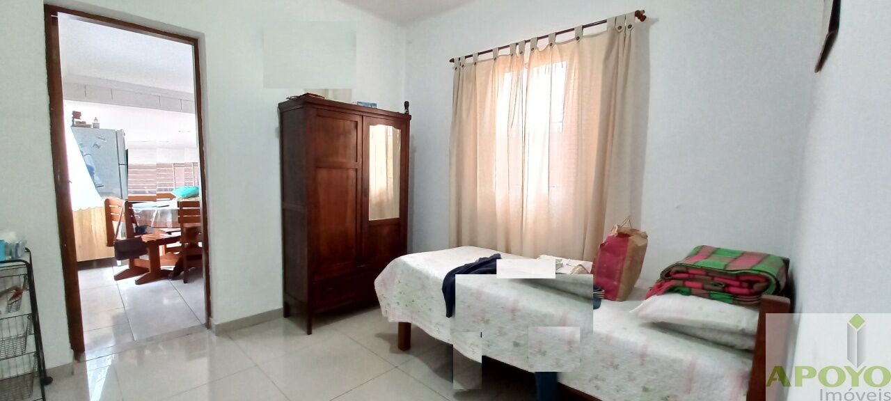 Casa 2: 1 dormitório, sala, cozinha, banheiro e quintal.