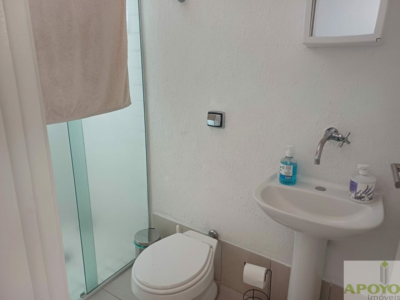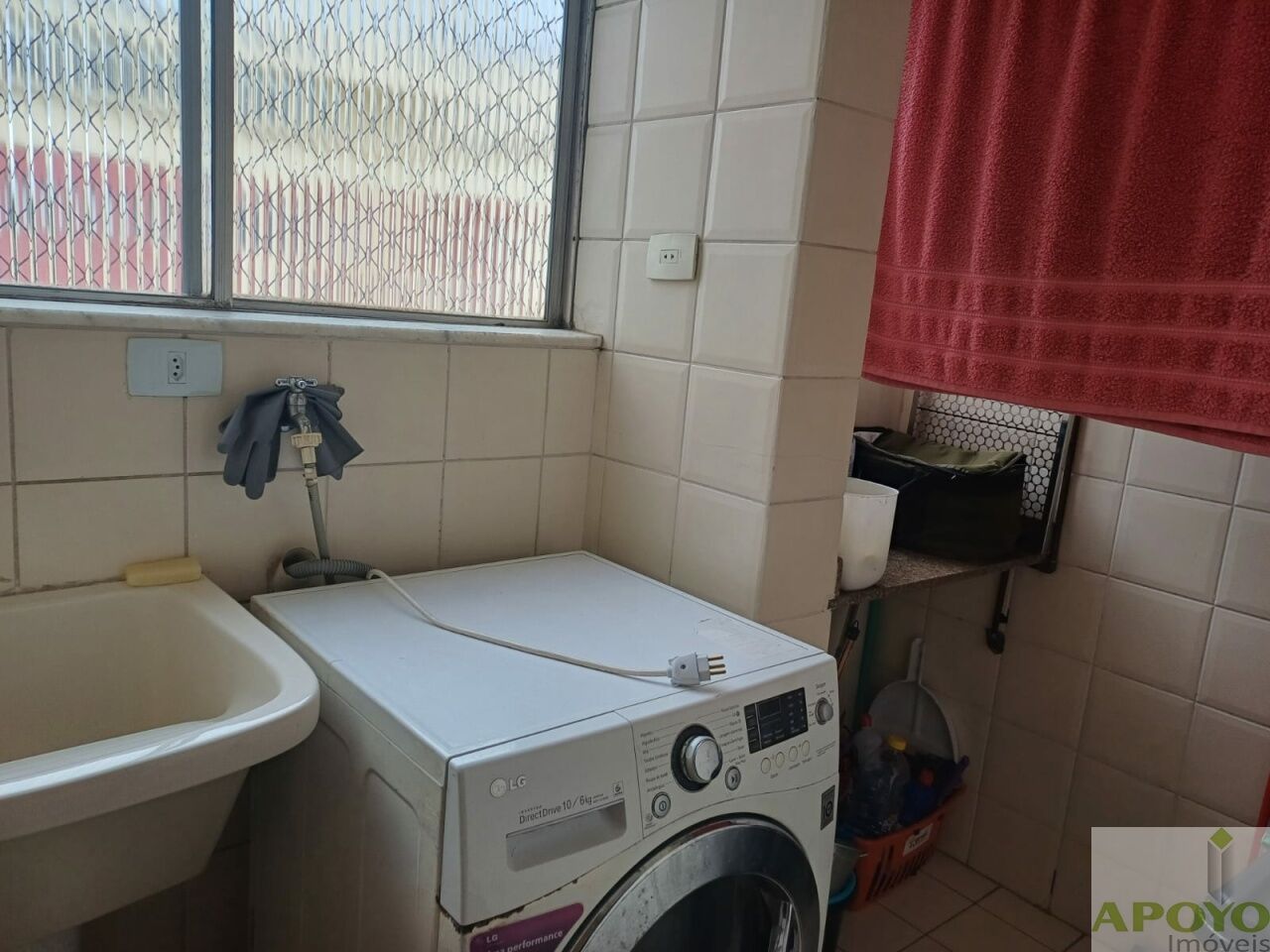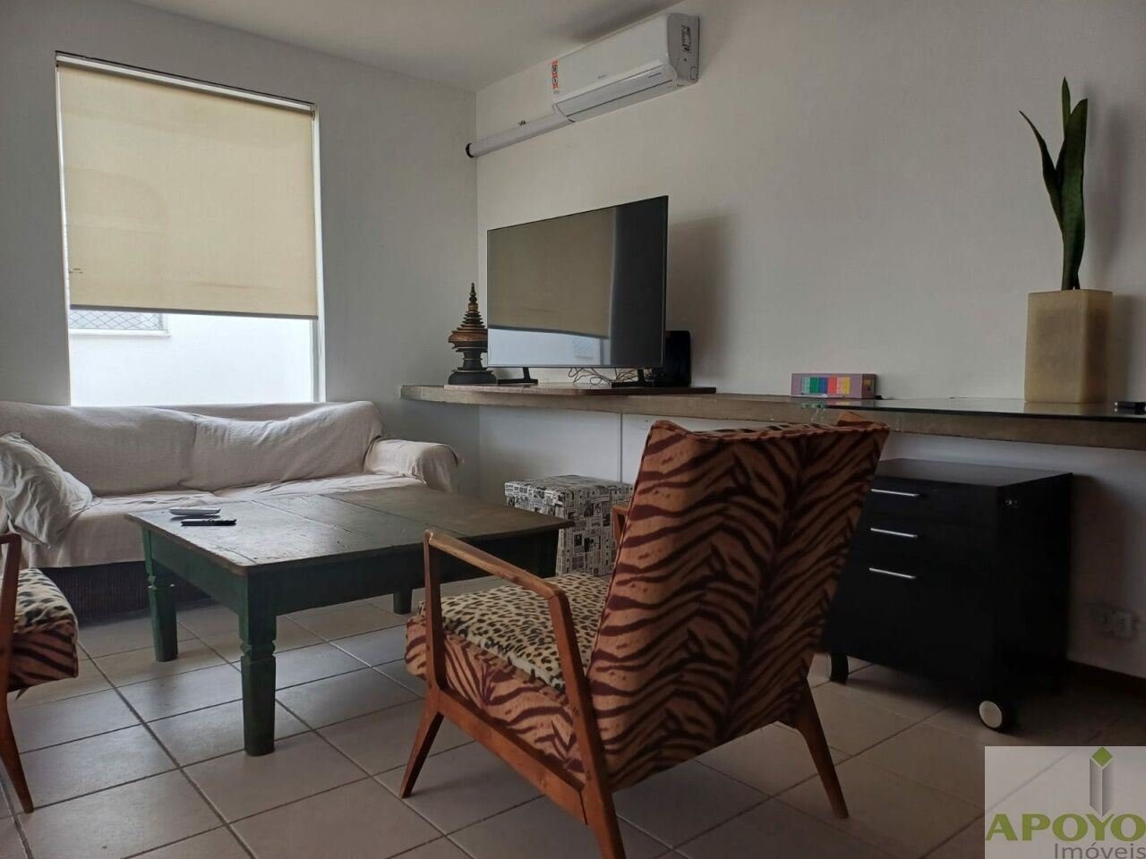 Apartamento com 3 dormitórios com ar condicionado novo, sala para dois ambientes com terraço, cozinha, banheiro social e lavanderia com lavabo na parte de baixo. Parte de cima com sala para dois ambientes com lareira, banheiro social e área externa com churrasqueira e cobertura retrátil – 130m² de área útil. 1 vaga de garagem.