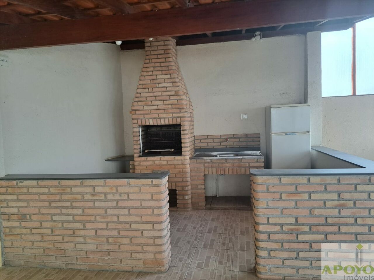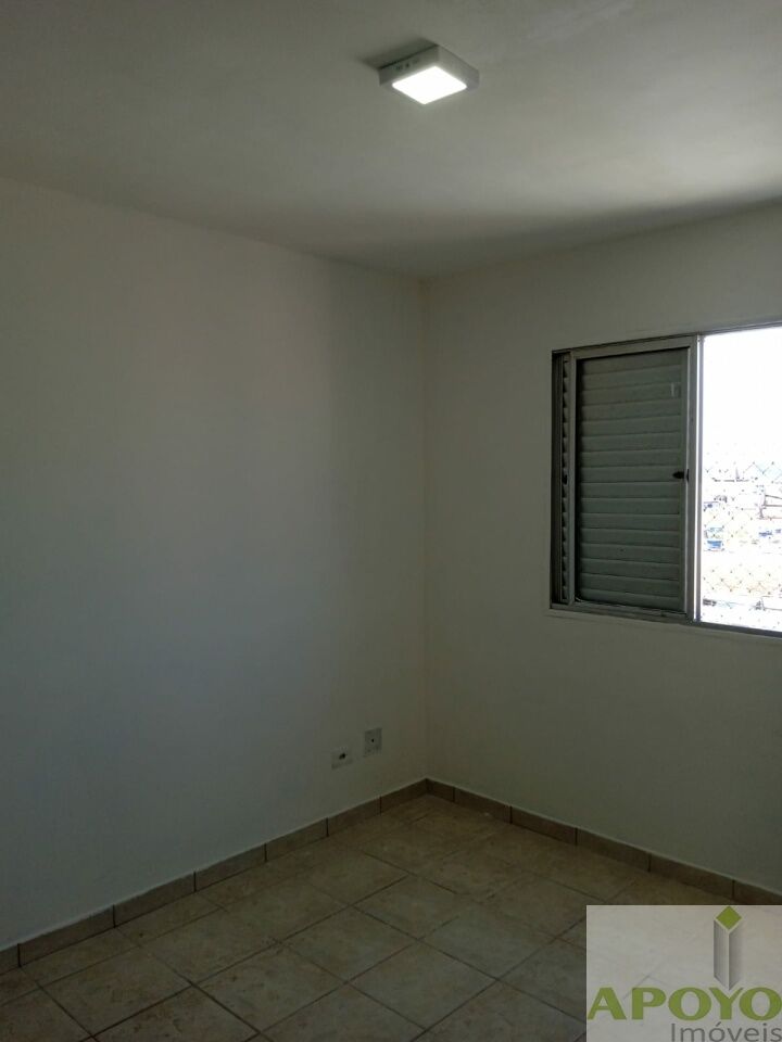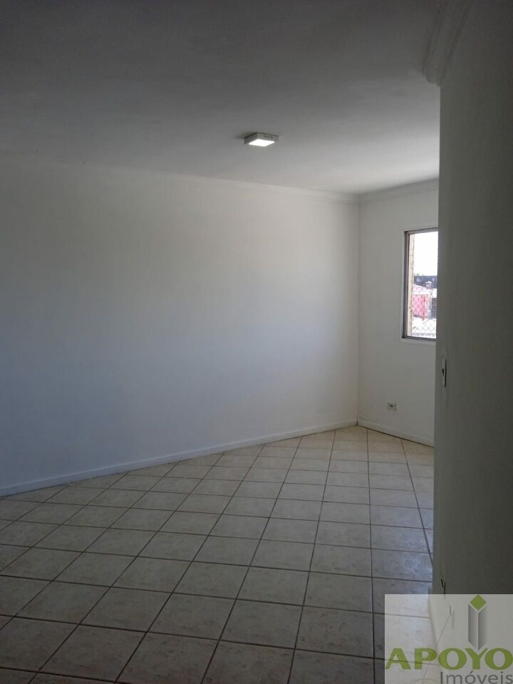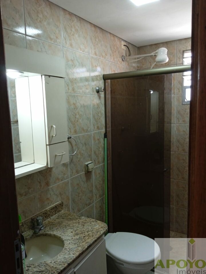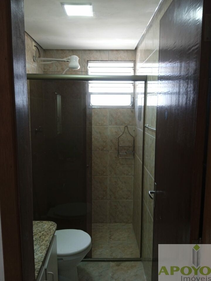 Prédio sem elevador, apartamento com 2 dormitórios, sala ampla, cozinha com armários, área de serviço e 1 vaga na garagem.