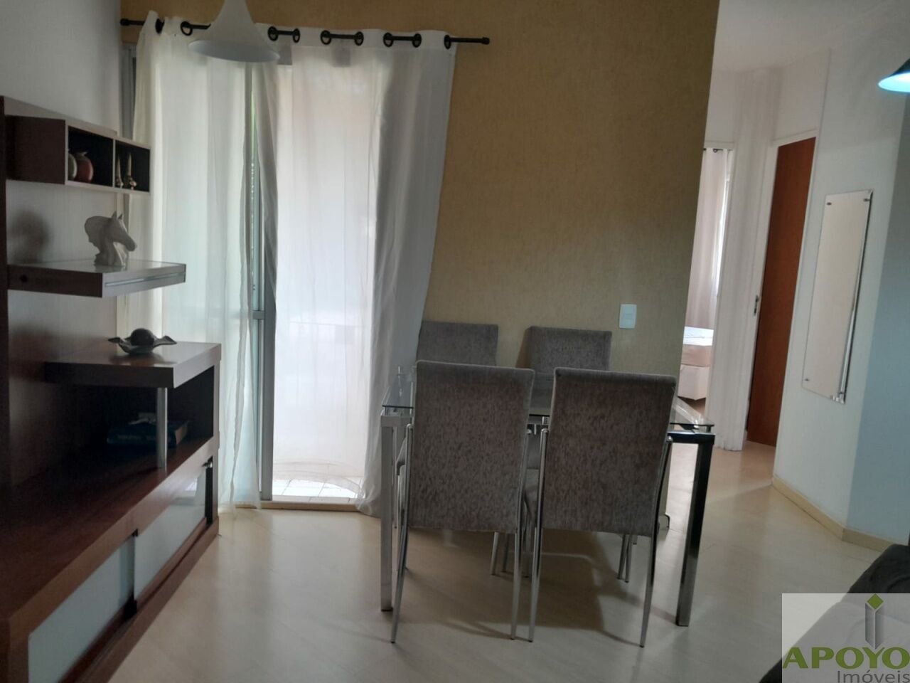 A unidade será vendida com todos os móveis que verá nas fotos,. A cozinha possui móveis planejamos e nos 2 dormt, armários e cama de casal .