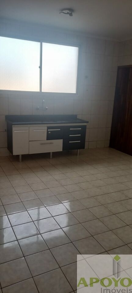 Casa com piso de cerâmica e armário na cozinha. Ideal para reforma e modernização.