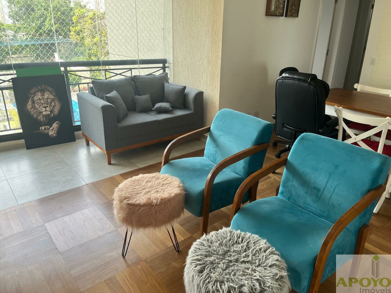 Sala ampla para 2 ambientes, integrada a um terraço envidraçado, com piso nivelado à sala, proporcionando mais conforto e sofisticação.