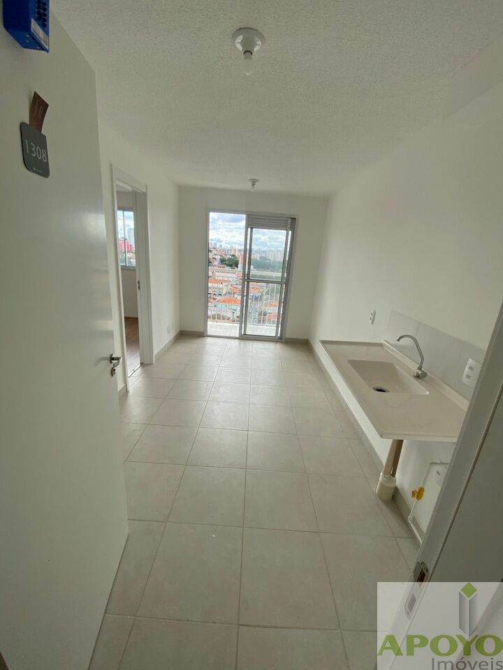 Apartamento de 28m2, com 1 dormitório, 1 banheiro e varada, sem garagem.