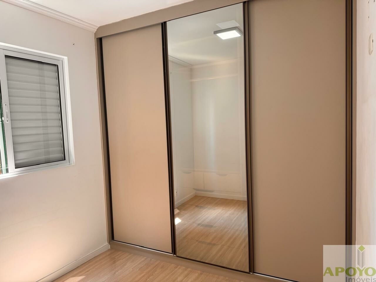 São 2 dormitórios, ambos com armários embutidos planejados e portas com espelho, que ampliam o ambiente e agregam sofisticação.