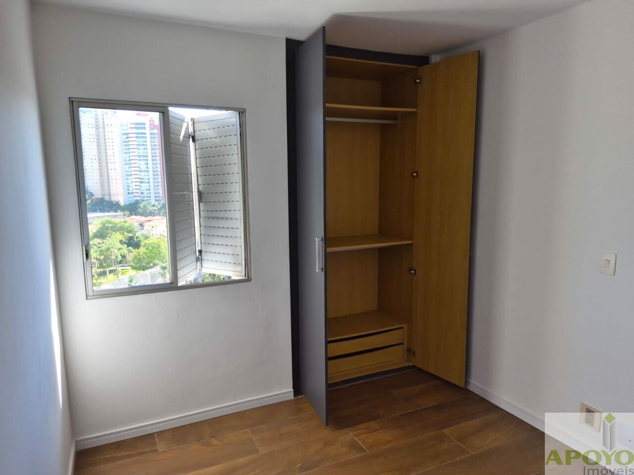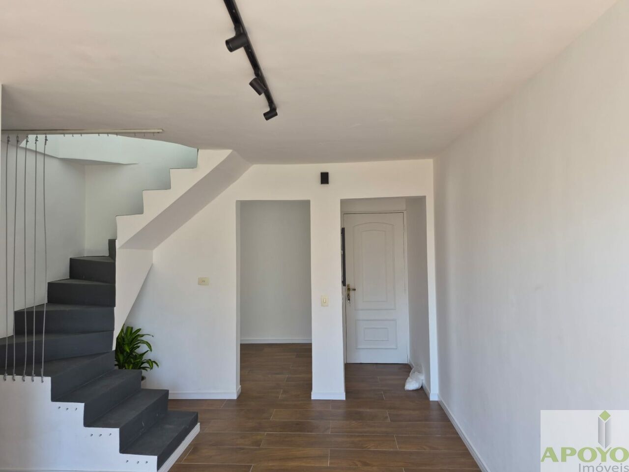 No piso inferior, o imóvel conta com ampla sala para dois ambientes, perfeita para receber amigos e familiares, além de sacada que proporciona ótima iluminação natural e ventilação. São dois dormitórios, sendo uma suíte com espaço reservado para closet, garantindo mais praticidade no dia a dia. Todos os quartos possuem armários planejados e o acabamento em piso cerâmico estilo madeira traz charme e aconchego aos ambientes.