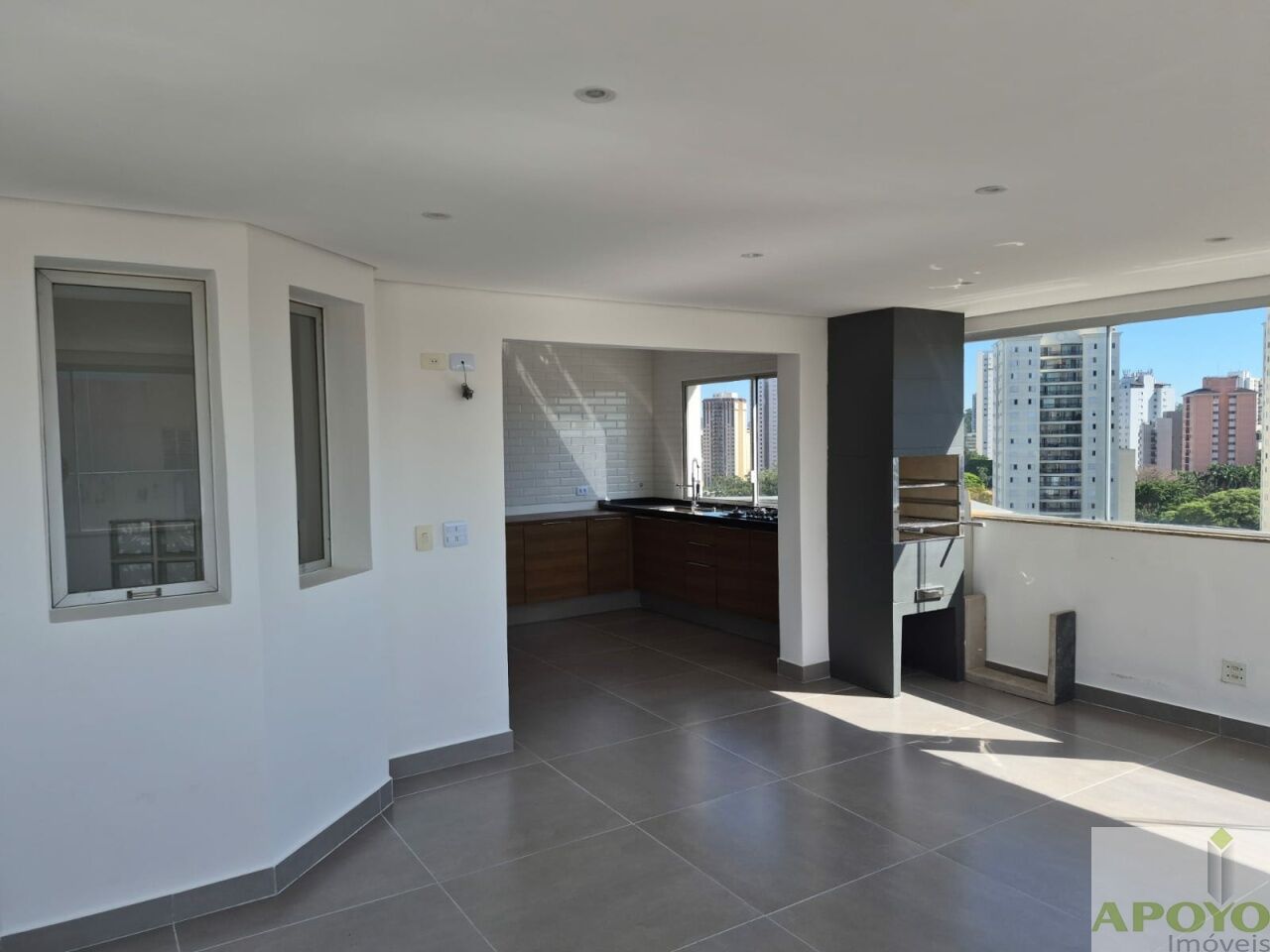 Na parte superior da cobertura, você encontra uma cozinha equipada com armários planejados e fogão cooktop, banheiro com box, além de um amplo salão de eventos, ideal para confraternizações e momentos especiais. A área de serviço completa oferece funcionalidade e organização.