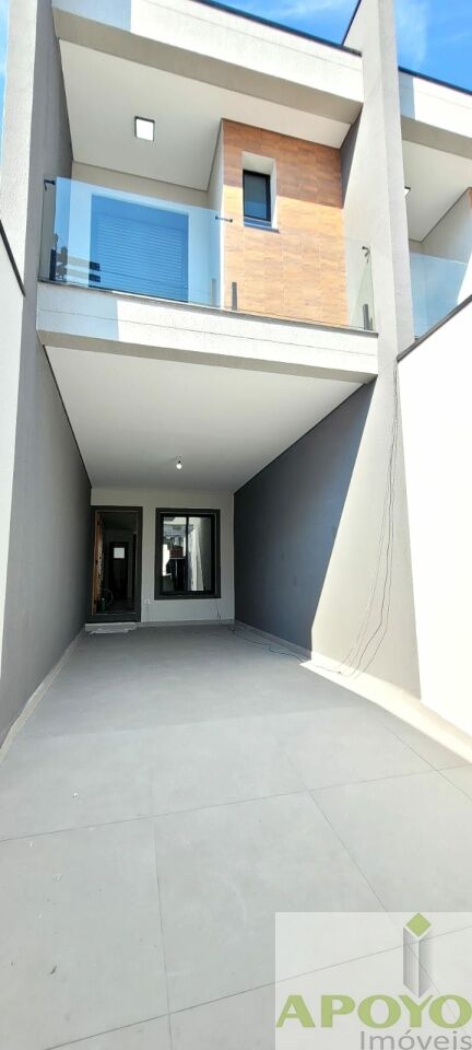 Belo Sobrado com 100 m2 de área útil – 3 dormitórios, sendo 1 suíte com sacada, sala, cozinha, lavabo, conceito aberto, área gourmet com churrasqueira, lavanderia, garagem para 2 autos