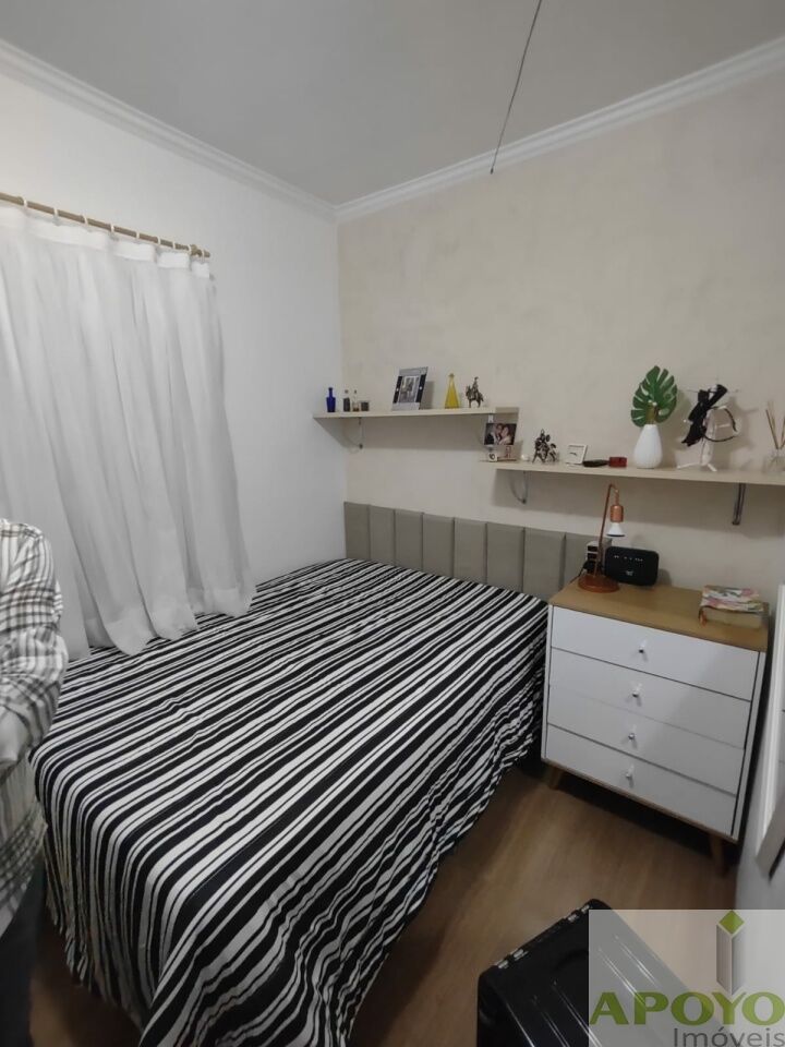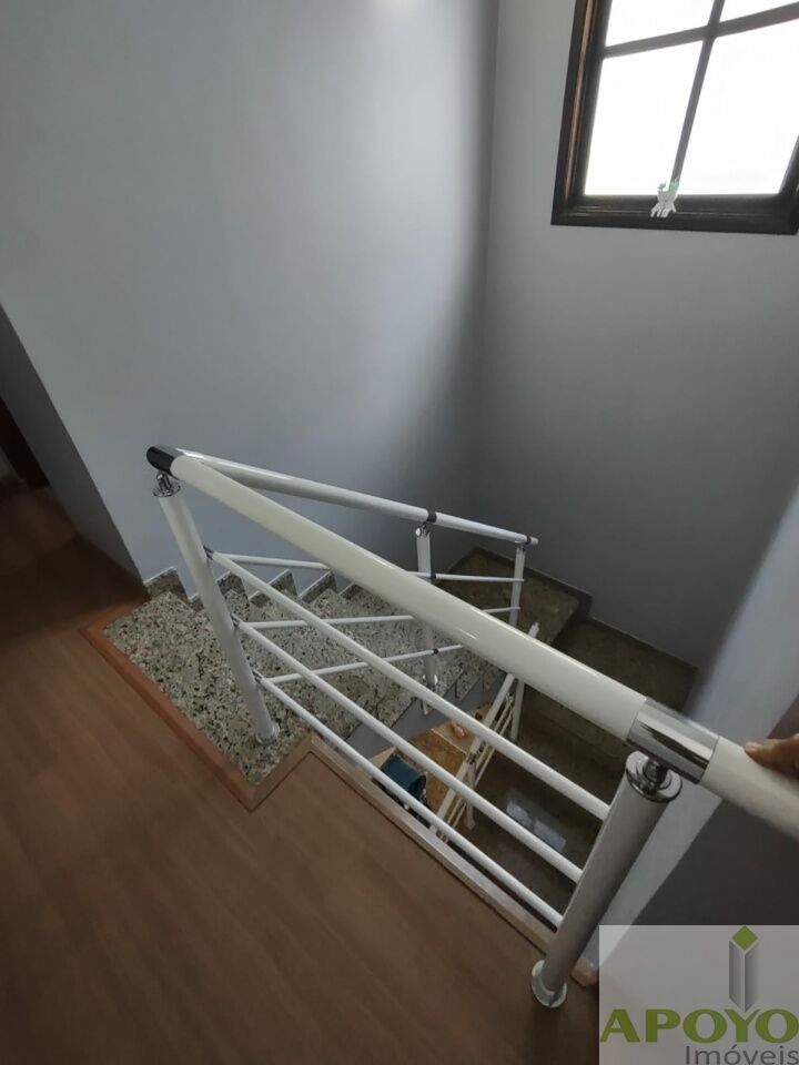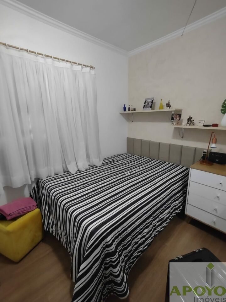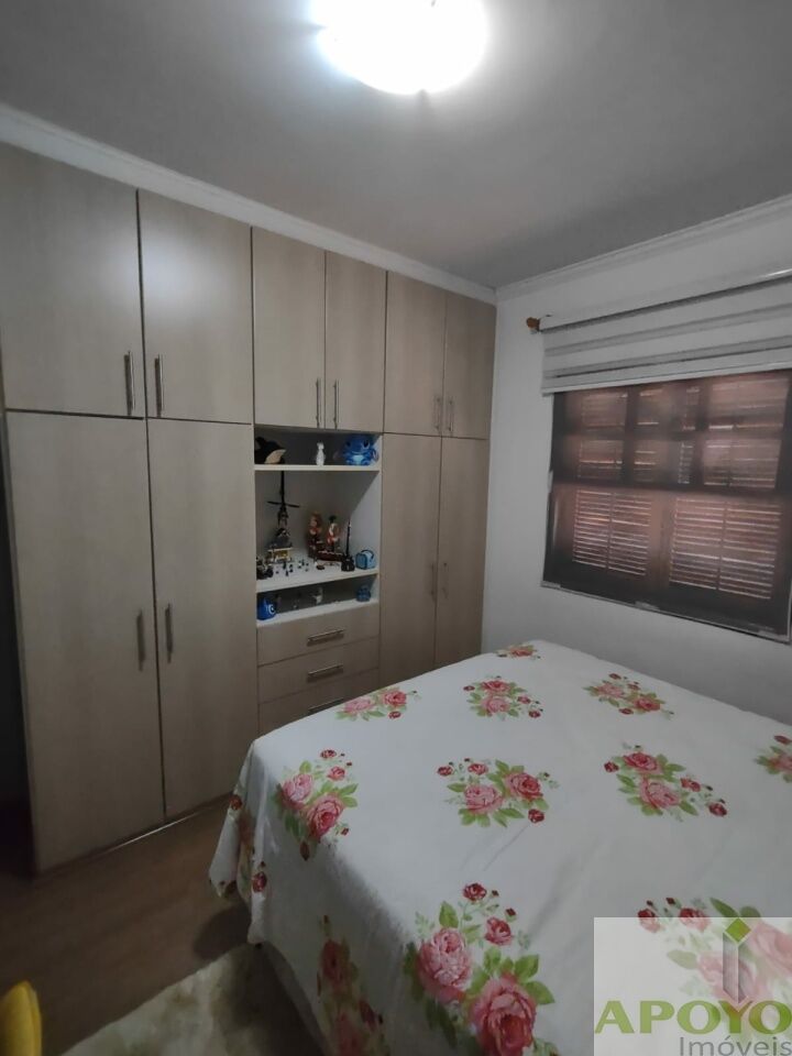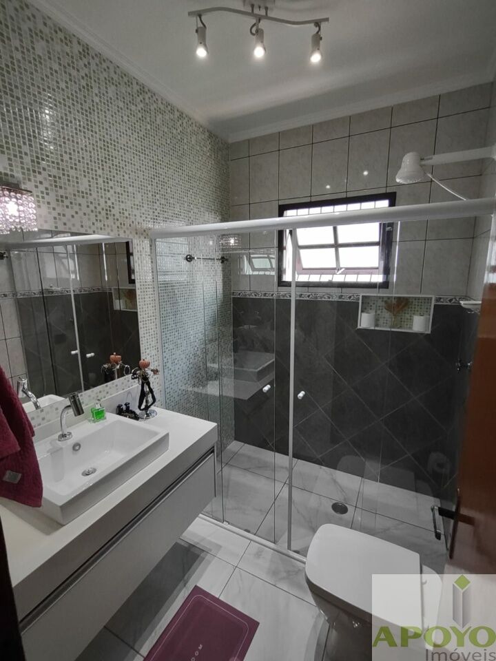No pavimento superior, o imóvel conta com 3 dormitórios, sendo 1 suíte com sacada e armários planejados, além de um banheiro social que atende perfeitamente os demais quartos.