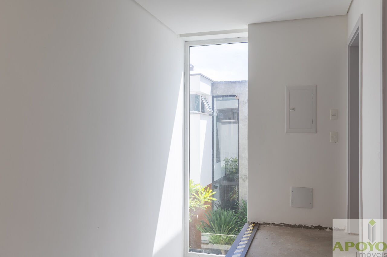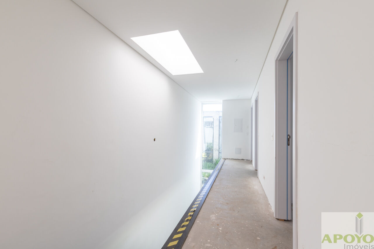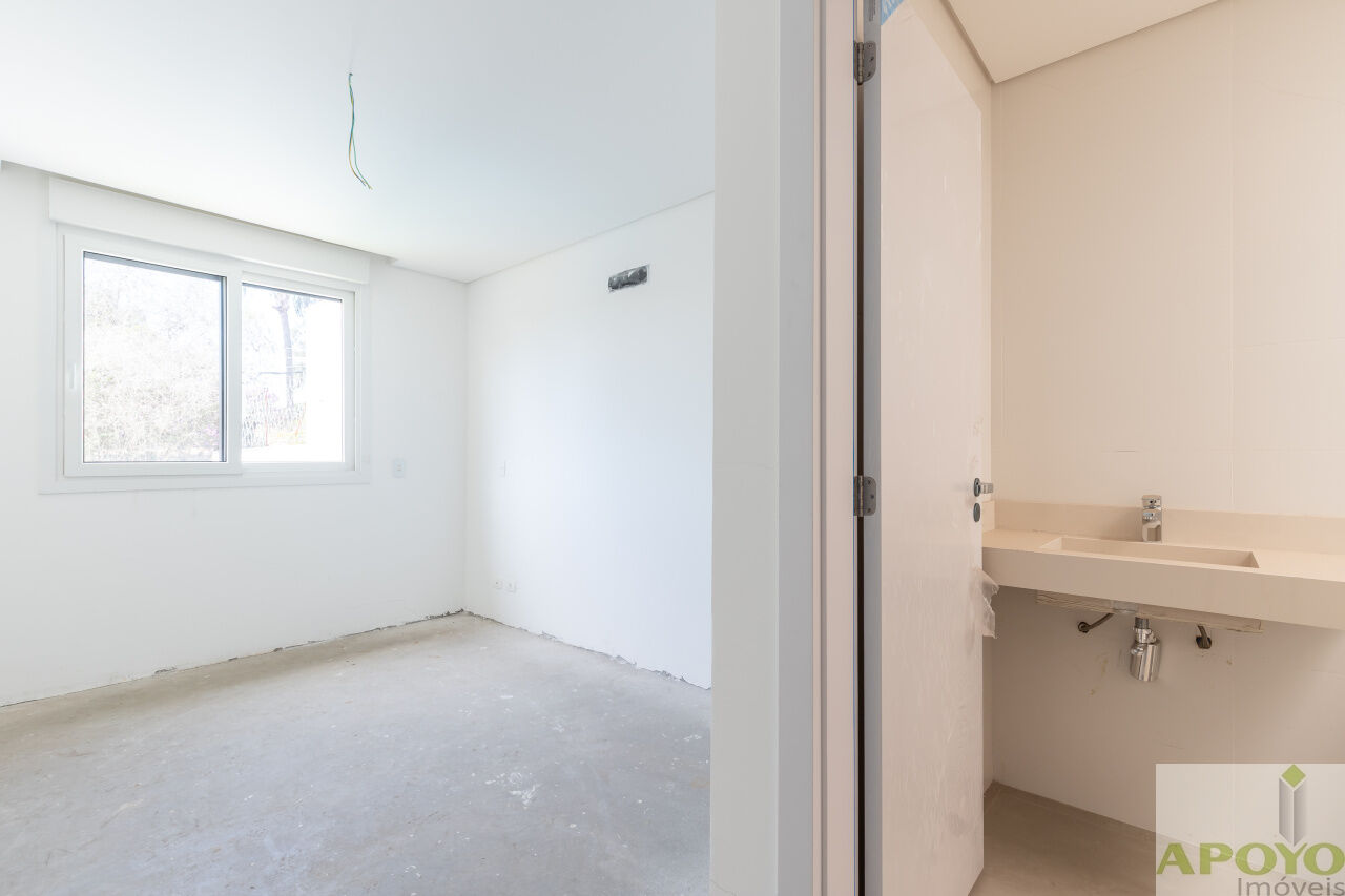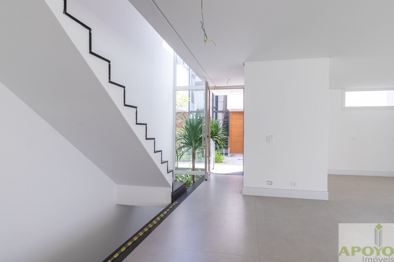 Casa com 4 suítes no segundo pavimento. Primeiro pavimento inteiramente aberto em ambientes que comporta, além da cozinha mais 3 ambientes e lavabo. Área externa com piscina, jardim gramado e área de serviço/lavanderia. 4 vagas de garagem no subsolo onde fica também uma dependência para empregados com banheiro – 427m² de área construida.