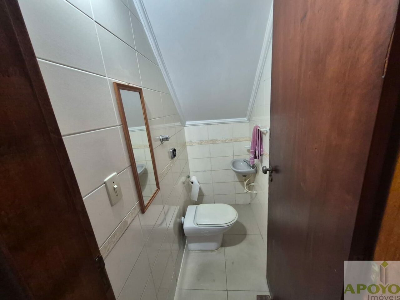 Casa com piso totalmente em cerâmica, sala ampla com dois ambientes, lavabo, cozinha com gabinete e pia em granito, além de armários planejados. Conta ainda com quintal, área de serviço e duas vagas de garagem.