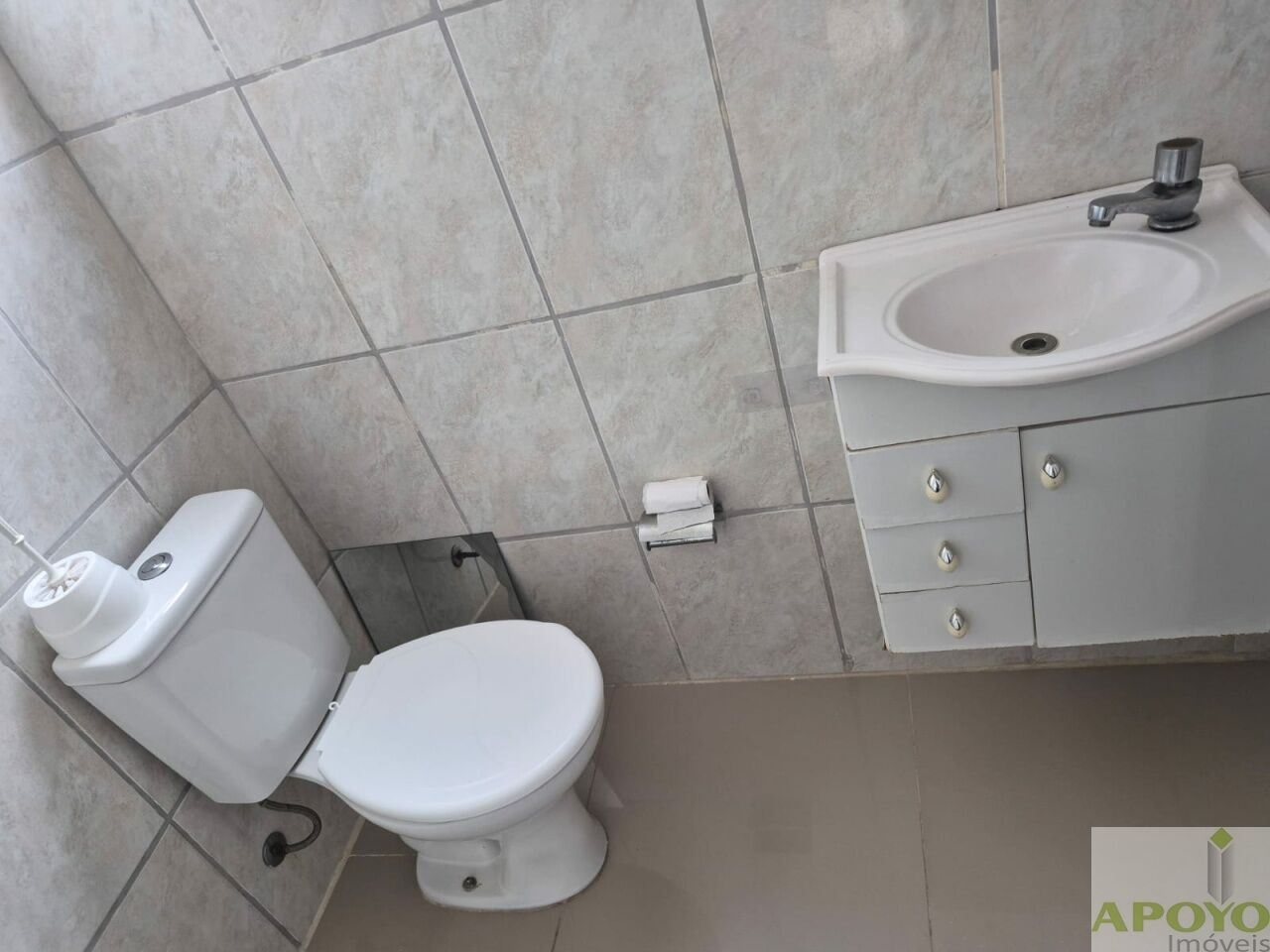O banheiro possui box instalado e pia com gabinete, proporcionando organização e conforto no dia a dia. A cozinha é equipada com armário e pia com gabinete, oferecendo espaço para armazenamento e apoio no preparo das refeições. Dispõe ainda de área de serviço independente, trazendo mais praticidade à rotina.