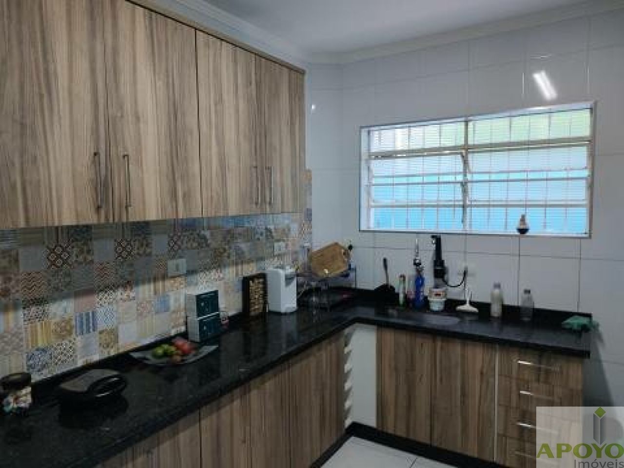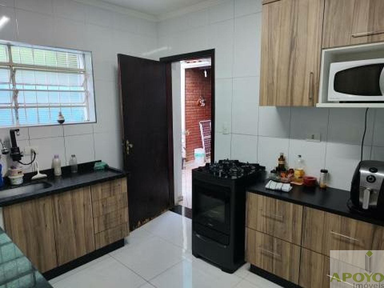 A cozinha dispõe de armários e bom espaço de circulação. O sobrado conta ainda com corredor lateral, garantindo melhor ventilação e acesso ao quintal.
