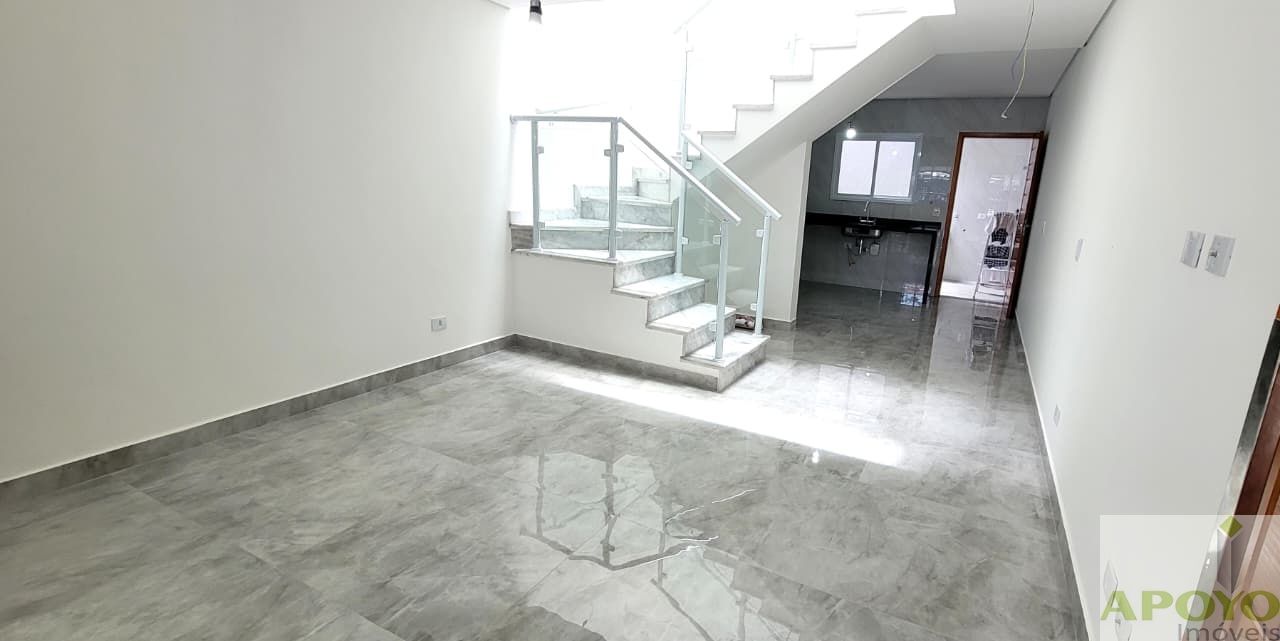 Sobrado novo 83 metros 03 dormitórios, 01 suíte, Sala, Cozinha, 01 banheiro social e 01 lavabo, quintal e 02 vagas de garagem com portão basculante sem motor, sala em piso porcelanato, lavabo, cozinha americana, quintal. Na parte superior a escada em granito, são 3 quartos( sendo 1 suíte com sacada na frente, caixa d água de 1000 litros. Cobertura do sobrado em telha de fibrocimento.